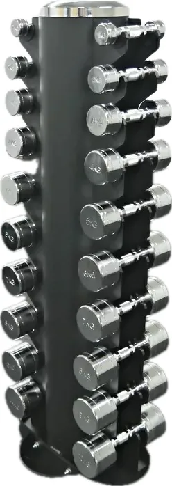高級クロム仕上げのダンベルを1kg刻みで完備。