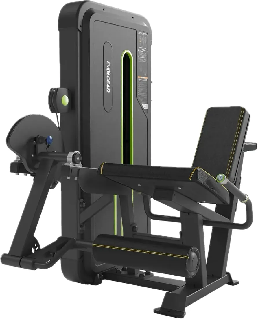 動作に合わせて軌道がわずかにカーブを描くため、膝関節の自然な動きを保ちながらも、動作終盤で負荷がしっかり乗る設計です。