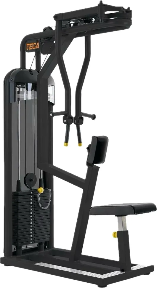 アーム角度を変えることで、ペックフライ(大胸筋)とリアデルト(後肩・肩甲骨周囲)を切り替え可能。